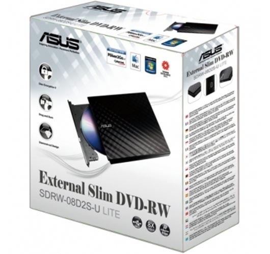 ASUS SDRW-08D2S-U LITE is an external slim DVD writer capable of 8X speeds. It's stylish and portable design. The lattice-like appearance of the drive is inspired by diamonds, making the product unique from every angle. Additional features include USB 2.0 and the E-Green Engine for the best optical storage available