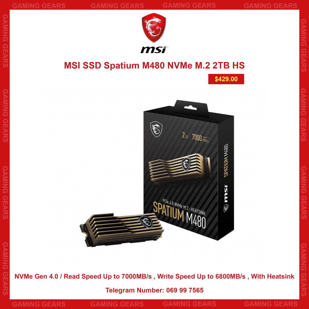 ( NVMe Gen 4.0 / Read Speed Up to 7000MB/s , Write Speed Up to 6800MB/s , With Heatsink)