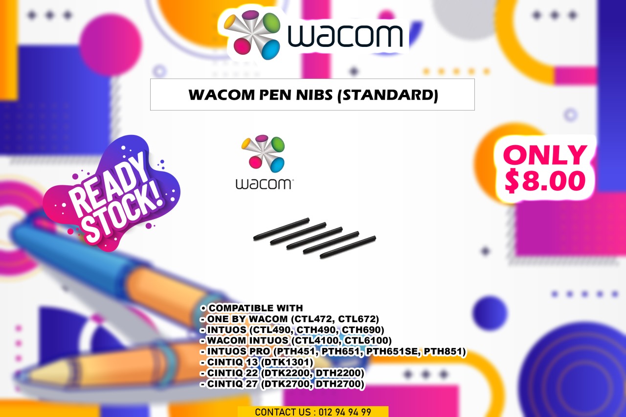 Standard NibsThis is a 5-pack of black replacement nibs. This nib is the standard, black nib that ships as the default for most Wacom pens.