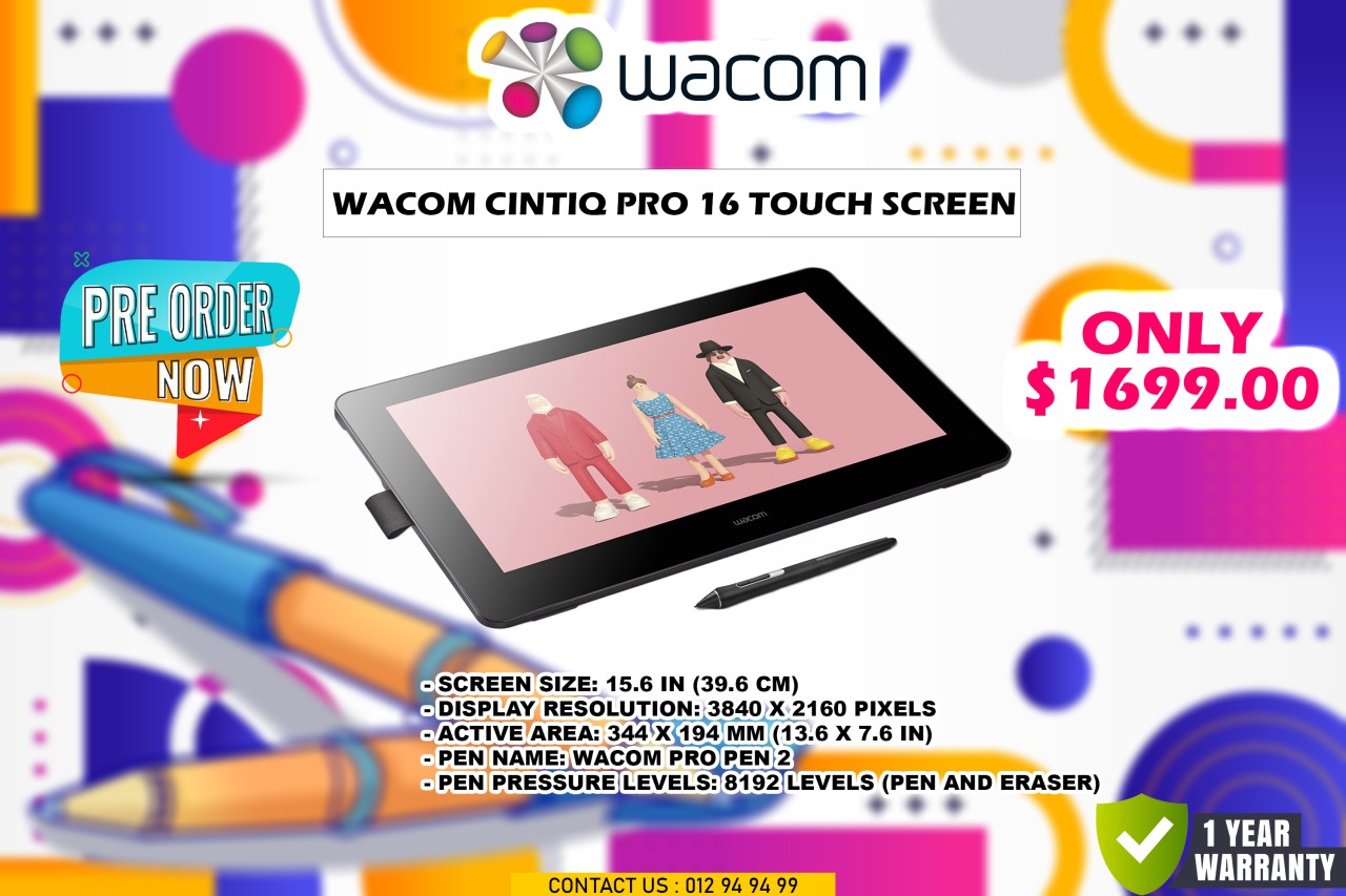 - SCREEN SIZE: 15.6 IN (39.6 CM)- DISPLAY RESOLUTION: 3840 X 2160 PIXELS- ACTIVE AREA: 344 X194 MM (13.6 X 7.6 IN)- OPEN NAME: WACOM PROPEN 2- OPEN PRESSURE LEVELS:8192 LEVELS (PEN AND ERASER)