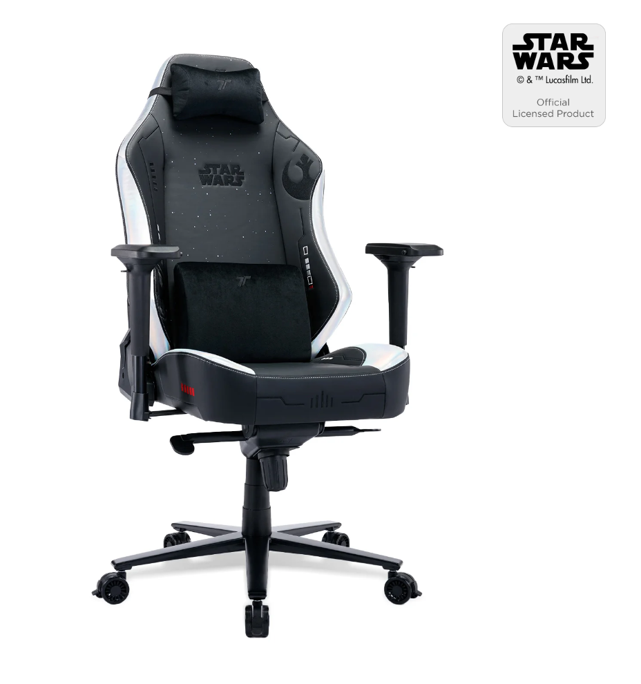 Get ready to blast off to a galaxy far, far away with our new TTRacing Maxx Star Wars Collector's Edition Gaming Chair. Crafted with stunning pearlescent PU upholstery and adorned with sparkling starry lights, this chair is a tribute to the eternal clash between the Rebel Alliance and the Galactic Empire. Perfect for both gaming and relaxation, this chair enhances any gaming or workspace, infusing it with an aura of cosmic exhilaration.