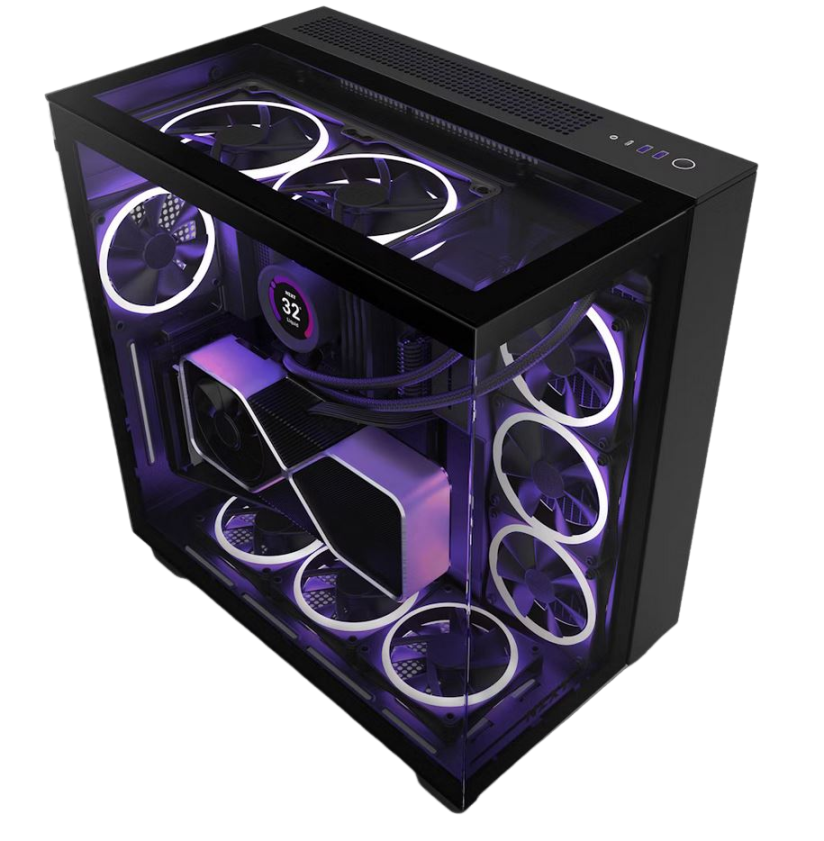 The H9 Elite is designed to show off every angle of your build with a tempered glass top panel and a built-in RGB & Fan Controller. The unique wraparound glass design with a dual-chamber layout is the perfect showcase for premium components.