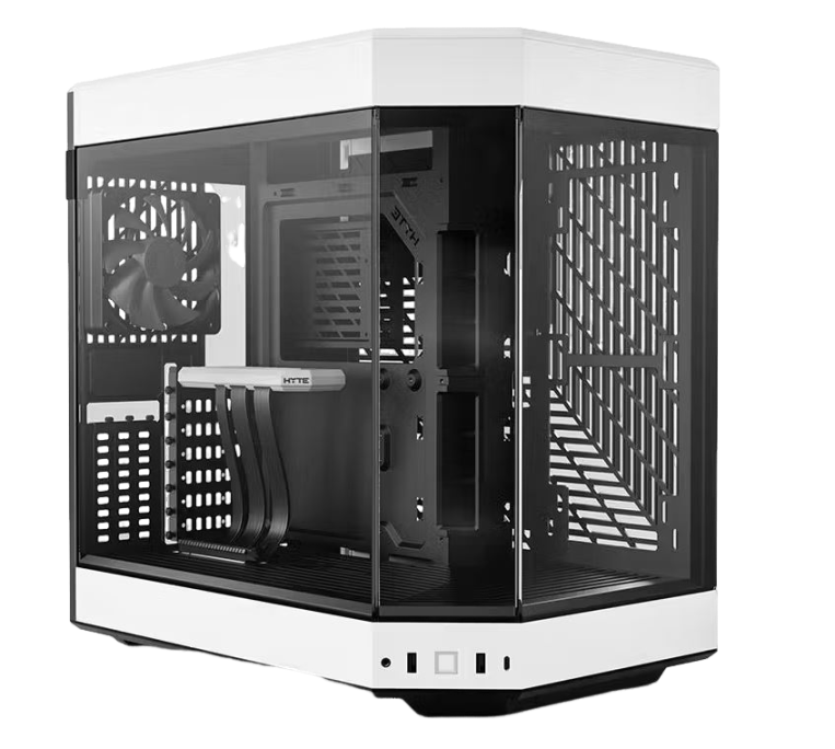 No corner pillar. The Y60 features a 3-piece panoramic tempered glass design for the ultimate photo and display potential. See your build the way it was meant to be seen from the left or right side of your desk with a simple turn.