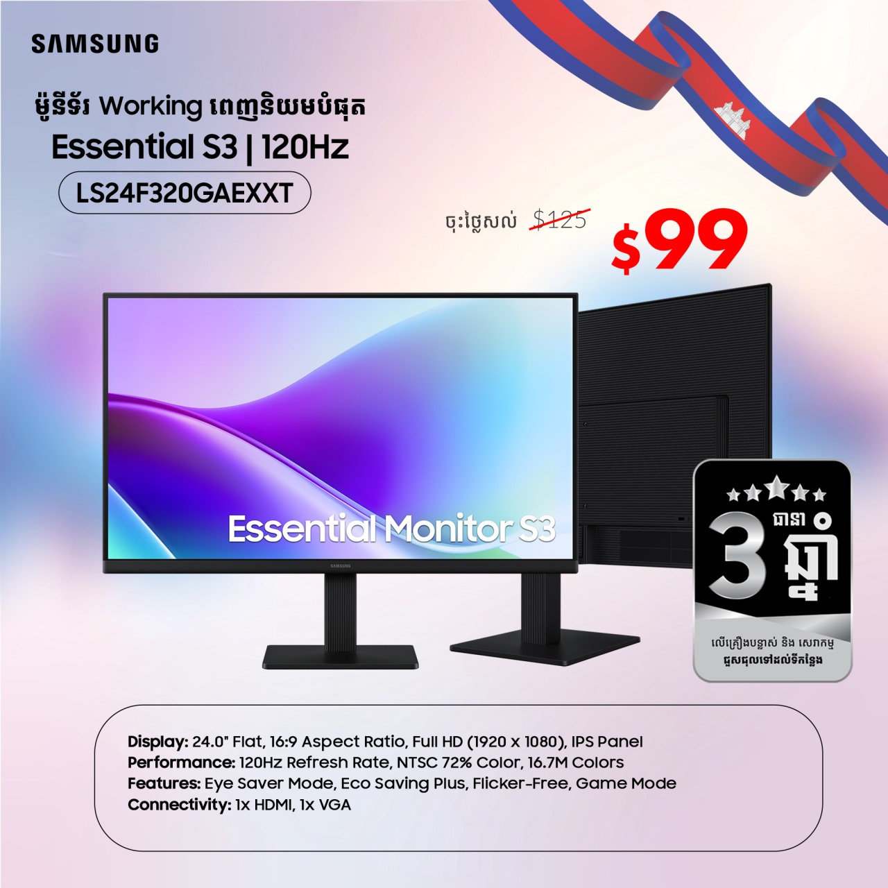 SAMSUNG ESSENTIAL MONITOR S3 24" 2025