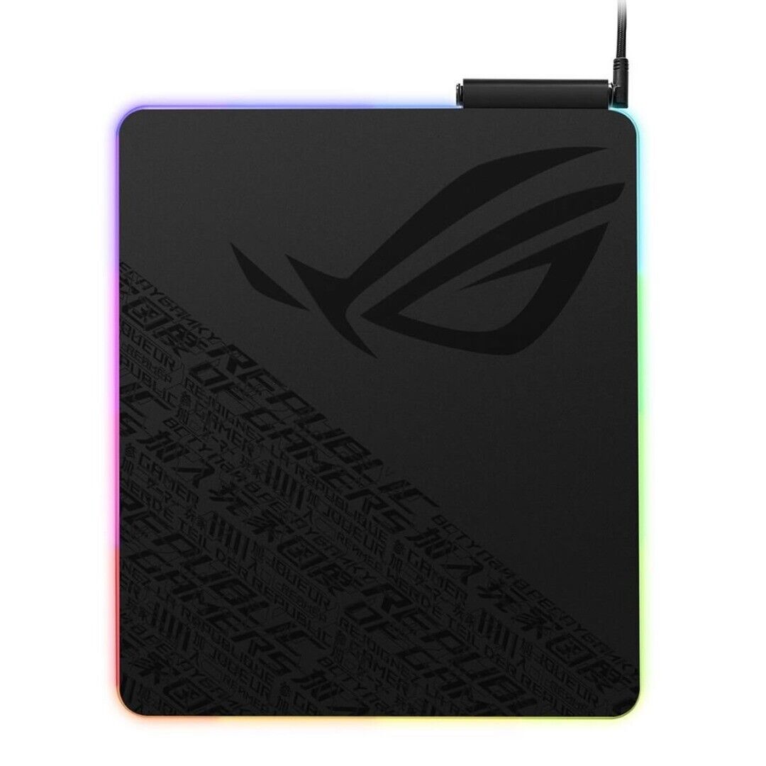 Balteus RGB hard gaming mouse pad with optimized tracking surface, 15-zone individually customizable Aura Sync lighting, USB passthrough, and non-slip rubber base