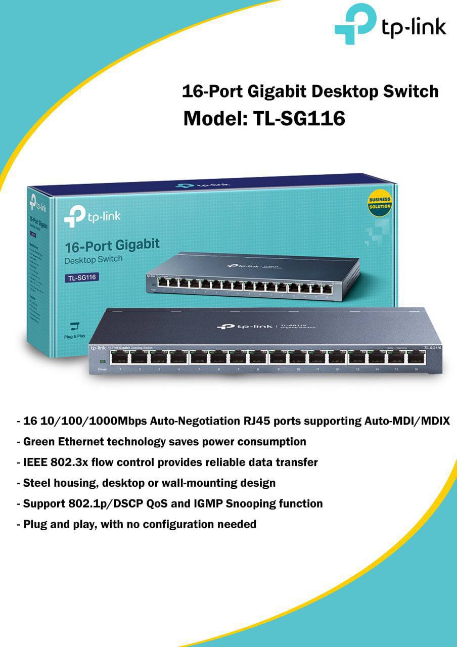 TP-LINK 16-Port Gigabit Desktop Switch Model: TL-SG116