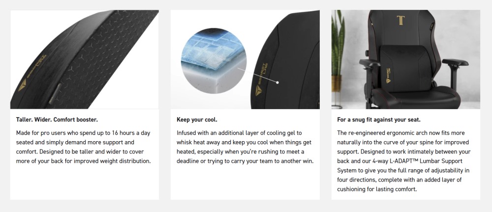 - Carefully sculpted ergonomic arch that complements the integrated 4-way L-ADAPT™ Lumbar Support System on TITAN Evo for enhanced back support.