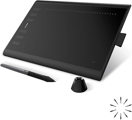 - Tilt Function Battery-free Stylus: This computer graphics tablet come with a battery-free stylus PW100, no need to charge, allowing for constant uninterrupted drawing. ±60° tilt support enables imitation of lines input with diverse drawing gestures, with accuracy ensured.