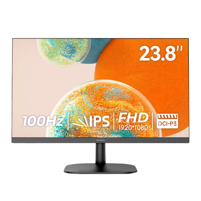 Panel size:23.8”Panel type:IPS panelResolution :1920×1080 100HzInput:VGA+HDMIBrightness: 250cd/㎡Power:Built-in power supply