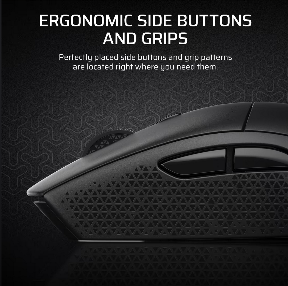 Become a truly unstoppable force. The CORSAIR M55 WIRELESS gaming mouse features a compact symmetrical shape to fit your hand size and grip style. The sleek M55 WIRELESS dashes across your desktop. Its wireless connection is just as fast, transmitting inputs with near-zero lag via SLIPSTREAM WIRELESS v1.5.