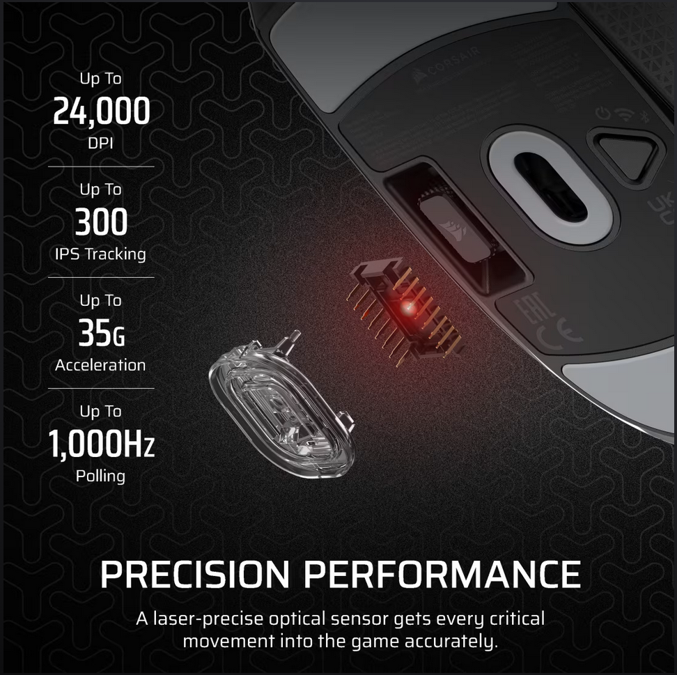 - Precise Optical Sensor up to 24,000 DPI: The optical sensor supports up to 24,000 DPI to accurately track every microscopic movement and aim, adjustable on-the-fly with a dedicated DPI button.