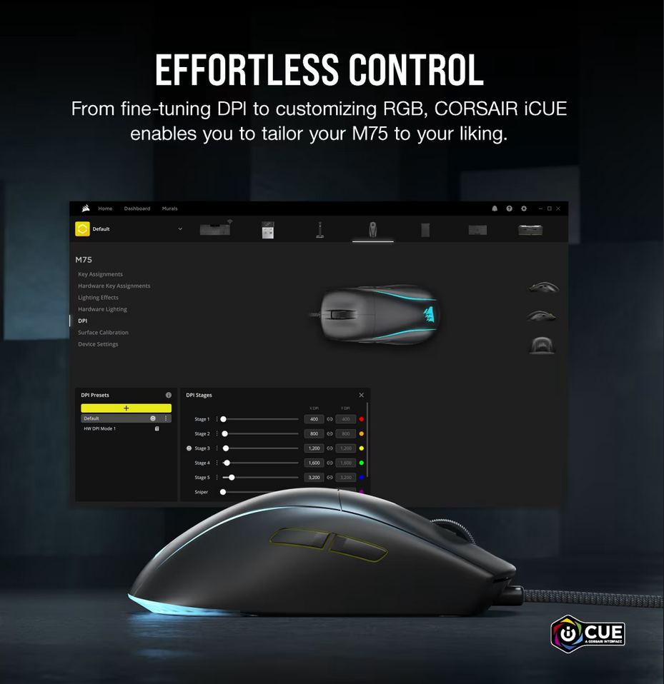 - Ultra-Precise 26k DPI Optical Sensor: With a native 26,000 DPI, 650 IPS tracking, and up to 50G acceleration, the CORSAIR MARKSMAN optical sensor accurately captures fast-twitch mouse movements, speedy sweeps, and rapid recenters.