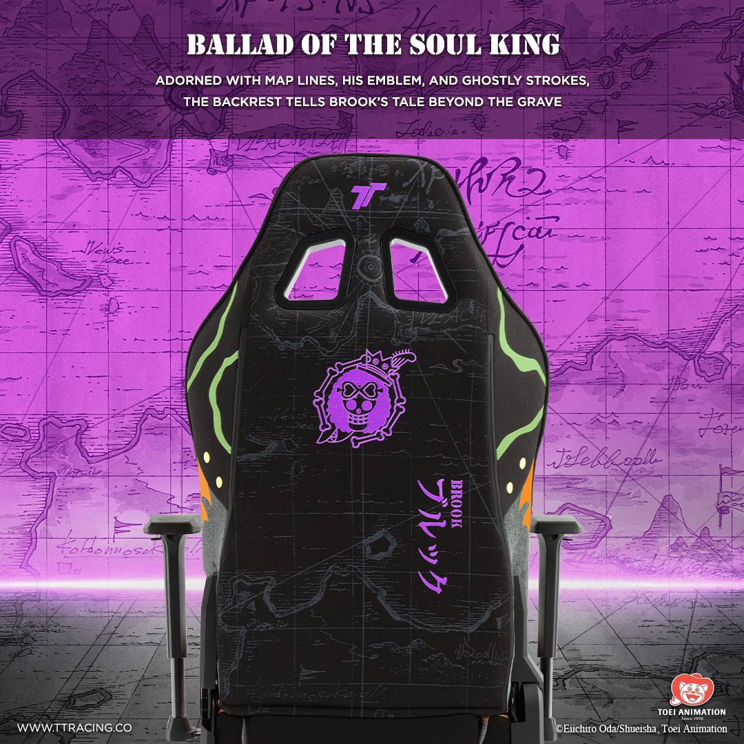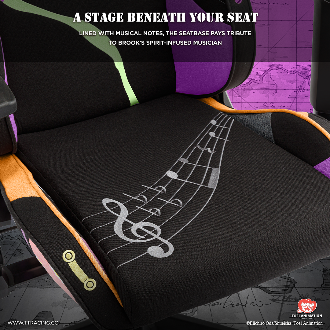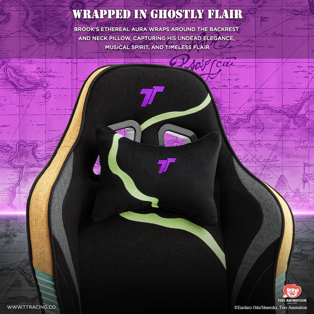 From a lonely skeleton lost at sea to the heart and rhythm of the Straw Hat crew, Brook’s journey is one of soul, laughter, and resilience. The TTRacing Swift X 2020 Air Threads Fabric Gaming Chair – Brook Edition captures that essence through stitched treble clefs, ghostly swirl motifs, and a design that radiates his eccentric charm. With breathable Air Threads Fabric and plush support, this chair lets you sit with the same confidence Brook found when he reunited with Laboon and reclaimed his music. A tribute to a man who never let death stop the beat.